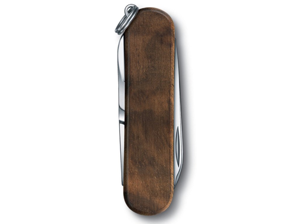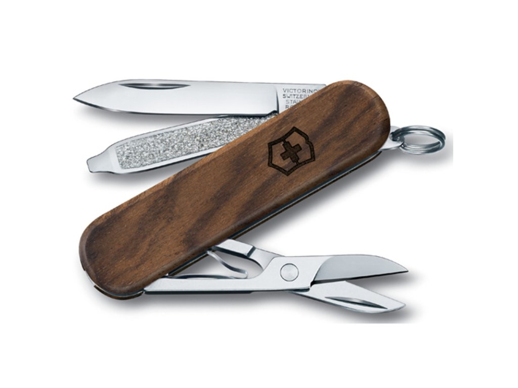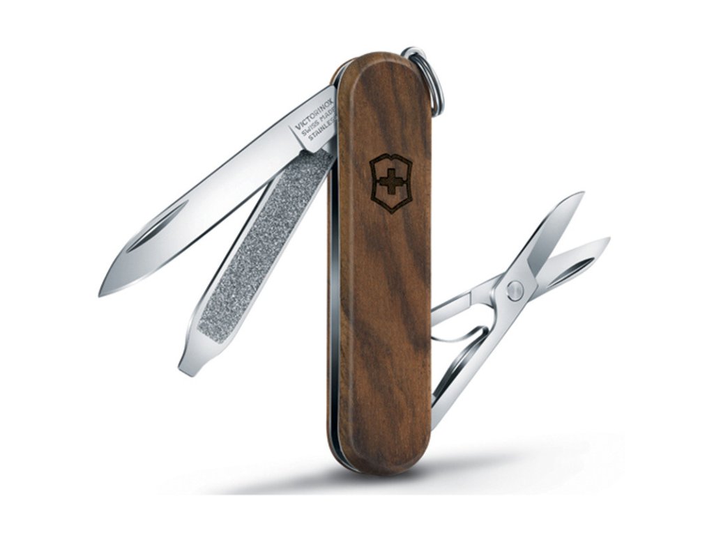 Malý kapesní nůž s nůžkami a šroubováčkem. Obsahuje všechny funkce pro každodenní použití. Střenky vyrobeny z elegantního evropského vlašského ořechu z udržitelných zdrojů. Každý nůž je unikátní díky bohaté a přirozené patině přírodního dřeva.