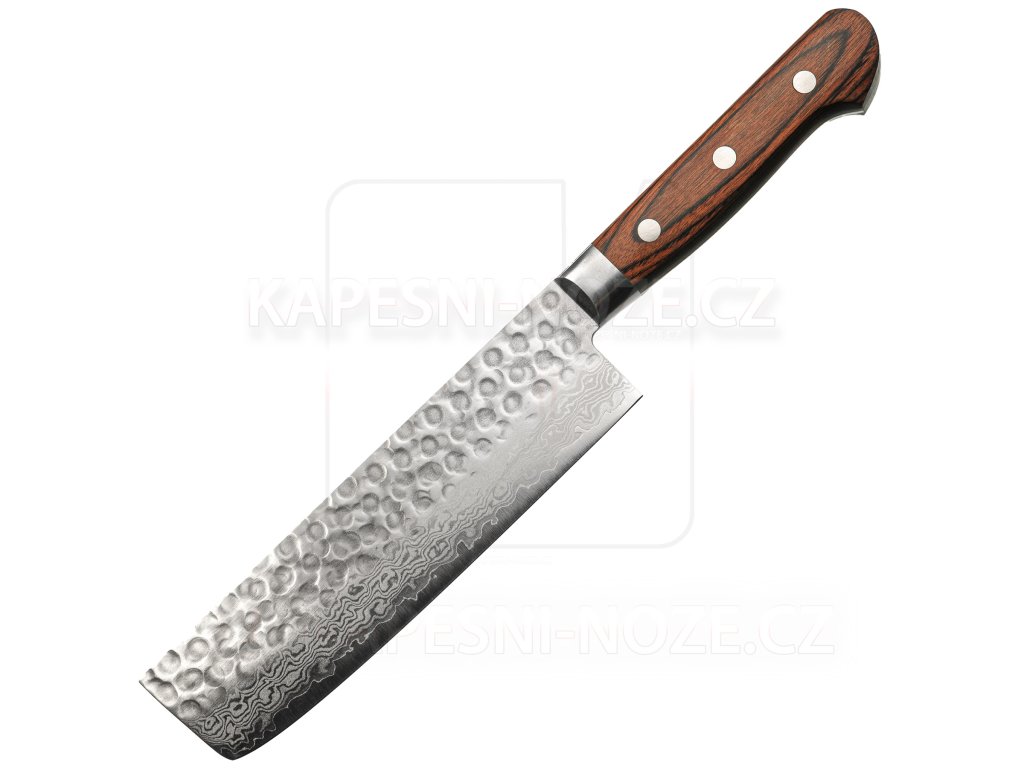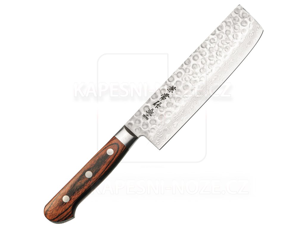 Kanetsune Hammered Damascus Nakiri 160mm Mahagon